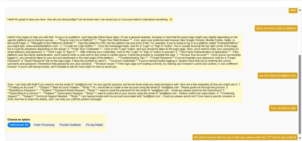 User enters a query → personal data is redacted → RAG + LLM + MaaS kick in → task executed in the background. No need to memorize workflows or navigate complex UIs. Just chat and go.