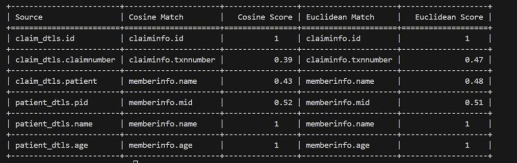 Similarity Scoring – Compute semantic similarity using cosine or Euclidean distance to identify best-fit column mappings. Need to explore Jaccard similarity or Levenshtein distance as a fallback.